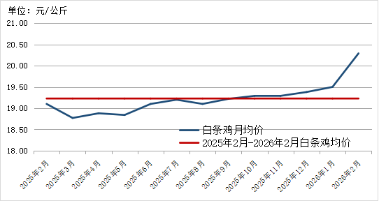 图8. 2025年2月-2026年2月白条鸡价格走势