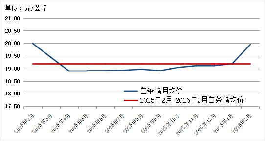 图9. 2025年2月-2026年2月白条鸭价格走势