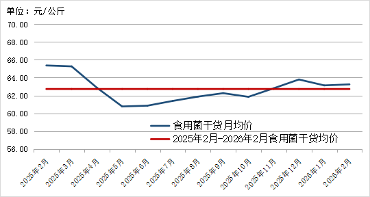 图15. 2025年2月-2026年2月3种食用菌干货平均价格走势