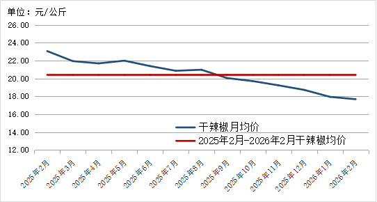 图16. 2025年2月-2026年2月10种干辣椒平均价格走势