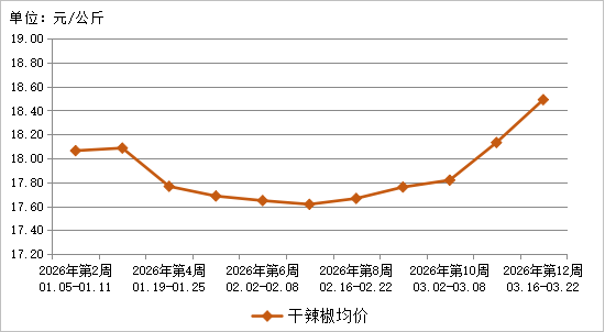 图9 2026年第12周10种干辣椒批发市场平均价格走势