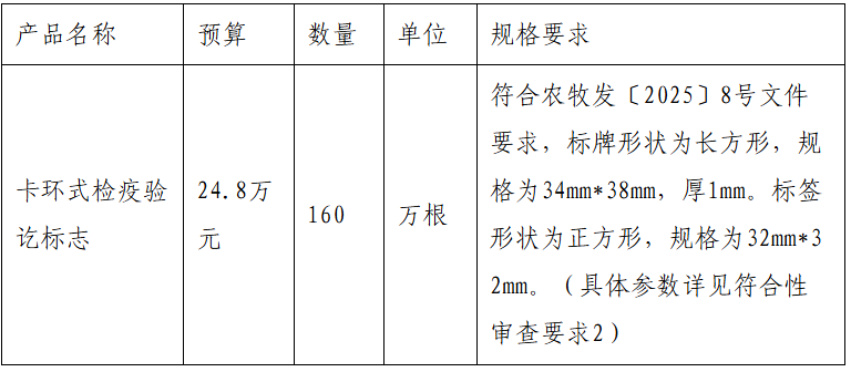 (一)项目名称:采购卡环式检疫验讫标志。