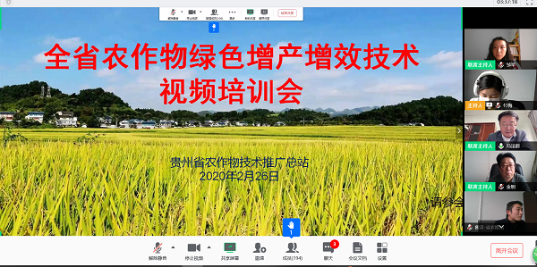 抓好春耕先手棋,重在做好技术培训。为继续贯彻落实全省脱贫攻坚誓师大会精神,根据省农业农村厅党组工作部署,在方涛副厅长的具体要求下,一手抓疫情防控,一手抓春耕生产, 2月26日上午,利用视频会议新形式,贵州省农作物技术推广总站组织召开了全省农作物绿色优质增产增效技术视频培训会,将会议开到疫情防控第一线,不误农时,切实抓好春耕生产。