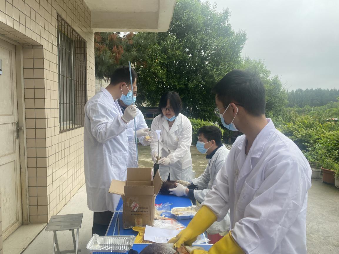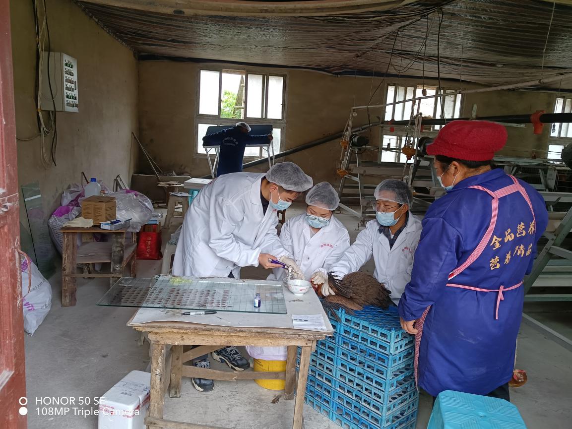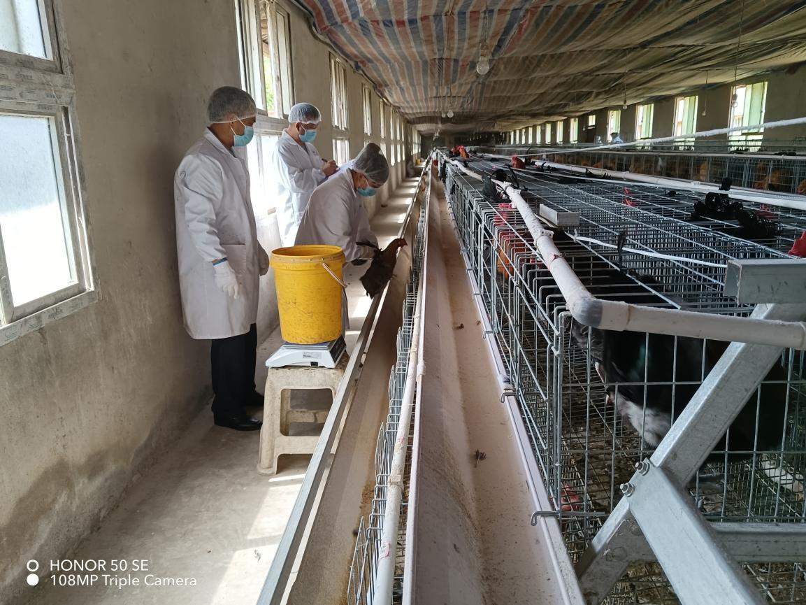 贵阳绿源禽业有限公司位于贵阳市乌当区百宜镇,成立于2003年,是一家集育种、生产、销售、服务为一体的科技型企业,主要养殖品种为瑶山鸡、绿源土鸡、绿壳蛋鸡等,存栏种鸡2万套,年可提供商品鸡苗150余万羽。团队成员于5月16日、5月18日至21日、5月25日至27日到现场针对瑶山鸡选育开展技术服务:对700余只不同家系的瑶山鸡种雏鸡进行翅号佩戴;对2000余只种鸡开展白痢检测和净化工作;开展育种素材体重测定,累计称重个体1000余羽;开展产蛋前母鸡组群工作,累计为2000羽种鸡调群,为种鸡生产性能的记录奠定基础。
