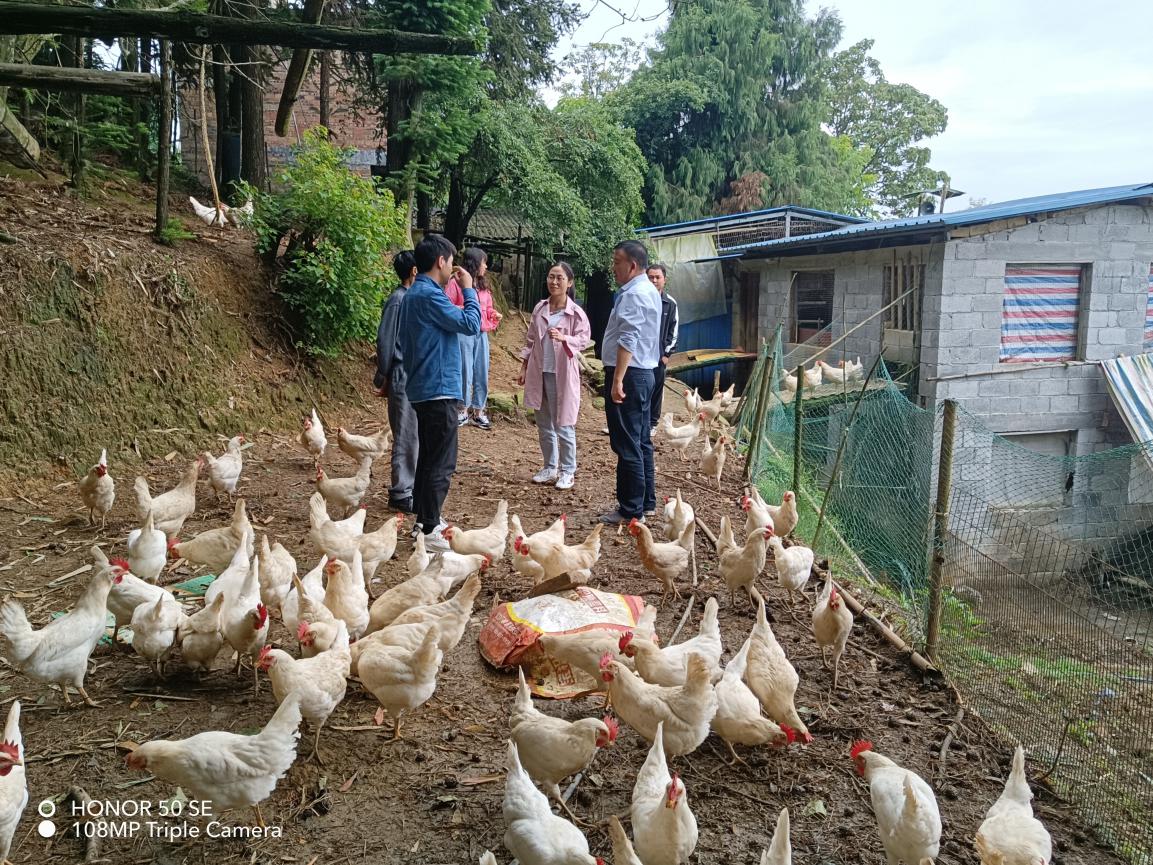 贵州金禾禽业有限公司位于普安县新店镇烂木桥村,成立于2016年,于2017年获得普安牛角山乌骨鸡的保种资格,旨在对其进行选育、提纯和扩繁以实现原品种原产地保护。历经多年的发展,原种场现存栏种鸡4000余只。团队成员多年以省科特派的身份在普安主要围绕普安牛角山乌骨鸡产业提质增效开展定点帮扶工作,并取得了显著成效。5月31日、6月9日,服务团队到现场指导普安牛角山乌骨鸡纯种选育工作。服务团队指出,作为原始品种,鸡群均匀度有待提高,生产性能还有较大的改善空间,保种和选育工作应持之以恒。下一步,团队将进行成鸡屠宰性能测定及疾病净化工作,促进普安牛角山乌骨鸡标准化生产。