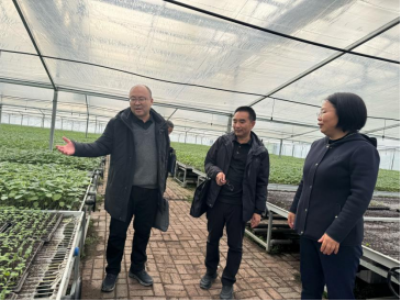 服务组实地查看基地育苗棚室,了解嫁接育苗技术试验成果应用情况及订单生产情况,围绕冬春季蔬菜育苗增温补光措施、能耗及效果开展充分交流,并跟踪了解种苗培育设施建设项目推进情况。