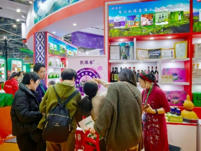 主题展区极具巧思与地域风情:以“中国红”为基调,配以“牛纹、蜡染、苗绣”等独具民族地区历史文化、风情特色的造型,打造独具民族风情特色展区;以“食在贵州、住在贵州、玩在贵州”“中国天眼、黄果树瀑布、花江大桥、万亩茶海”等图文和特色产业宣传视频为载体,浓墨重彩描绘“贵山贵水出贵品、贵茶贵酒敬贵人”,对外展示主题聚焦、特色鲜明、内涵丰富。着力打造“可听、可视、可品、可感”的沉浸式参展体验,让观众在鉴赏贵品美味的同时,直观感受新时期贵州乡村全面振兴的丰硕成果与独特魅力。