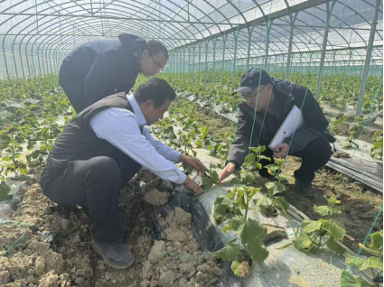 服务组指出,当前西葫芦长势相对较好,要及时根据植株生长情况做好田间管理,合理安排采收上市时间;黄瓜、辣椒受低温影响较大,植株根系发育差,普遍矮小、长势较弱,且黄瓜大部分已发生瓜打顶现象,辣椒分枝及花果发育情况不佳,均严重影响后期产量。建议结合基地棚室建设及植株田间生长情况,在板街村可部分采取扣棚后掐尖及药肥灌根、叶面追肥等技术措施补救,板其村考虑建棚后重新育苗移栽。同时,近期温度进一步降低,要提早预防霜冻危害,加快盖棚防风、防寒,避免生产损失。