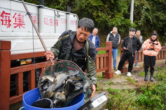 2020年,黄泥冲村依托山泉支流汇集,建起了平均水深维持在4米的天然鱼塘,发展“渔”乐经济。村里通过成立合作社,大力发展休闲垂钓产业,生意好时单日收入达两千元。此次补充鱼苗,将显著增强鱼塘承载力与吸引力,推动“垂钓经济”效益再上新台阶。