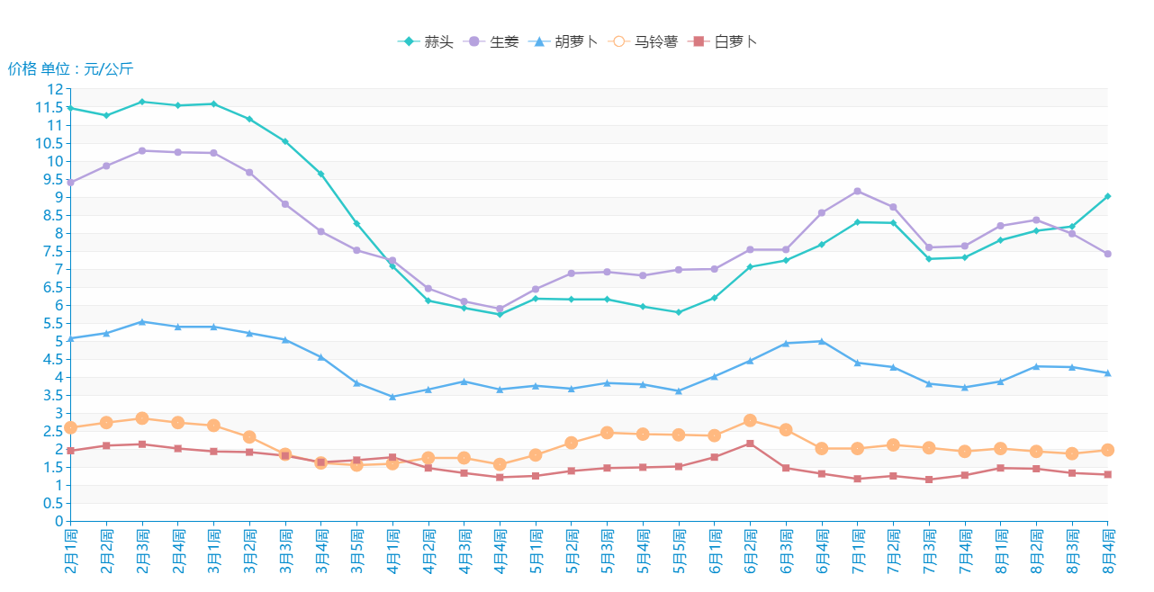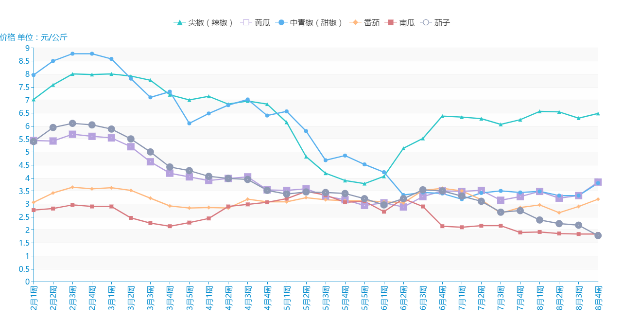 附件:8月份第4周蔬菜批发市场价格表及走势图