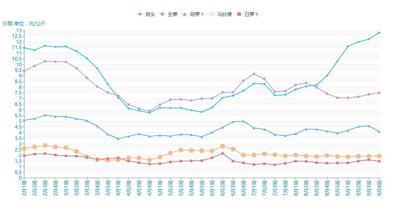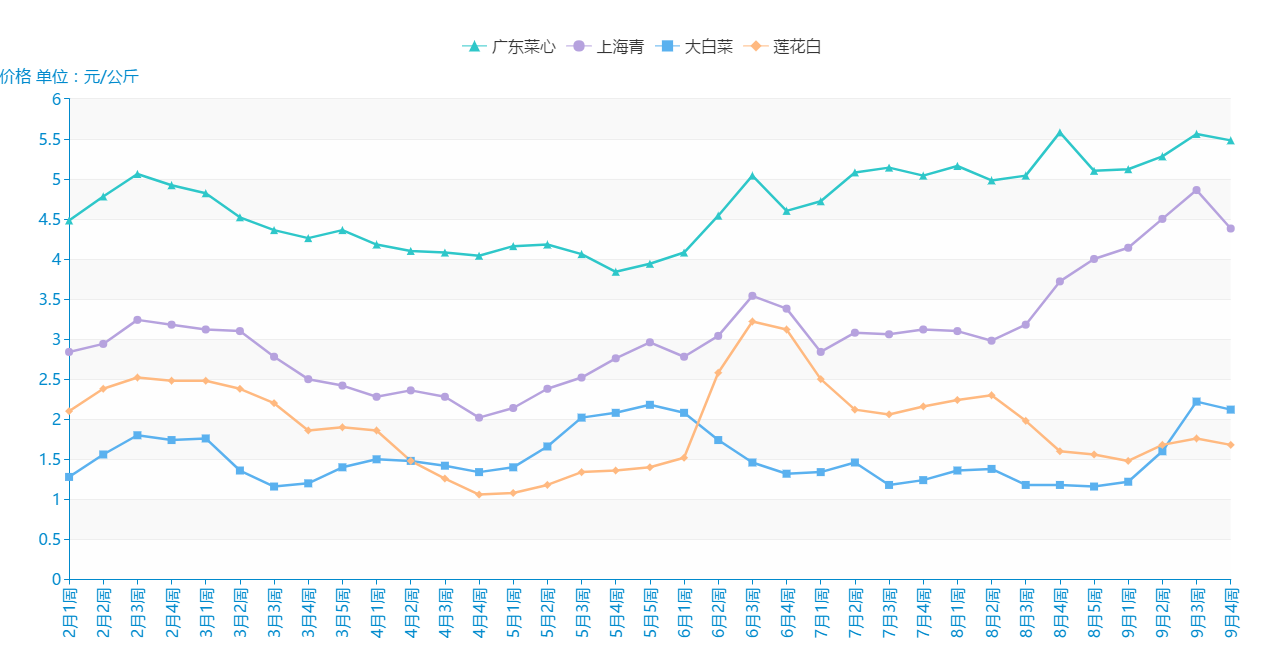 附件:9月份第4周蔬菜批发市场价格表及走势图