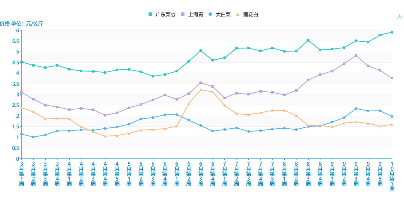 附件:10月份第1周蔬菜批发市场价格表及走势图