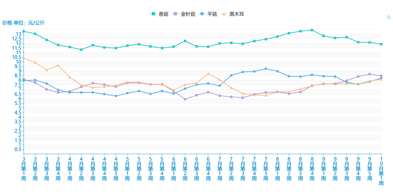 2018年3-10月 菌类平均价格走势图