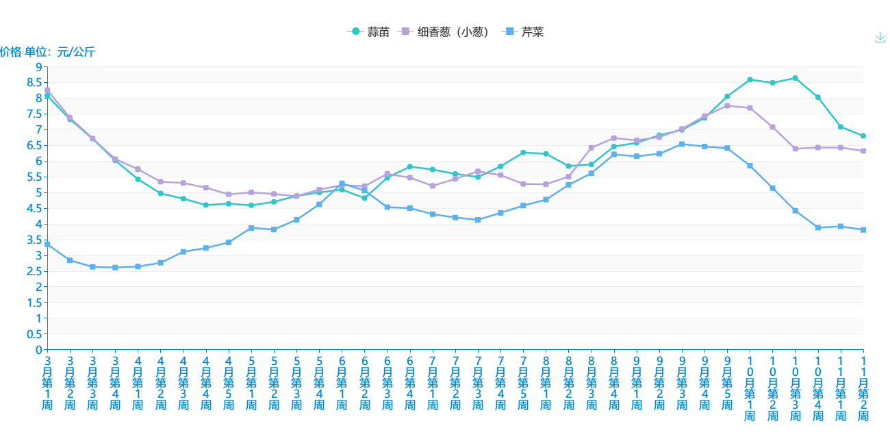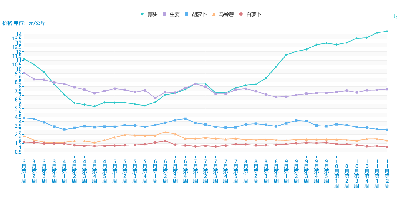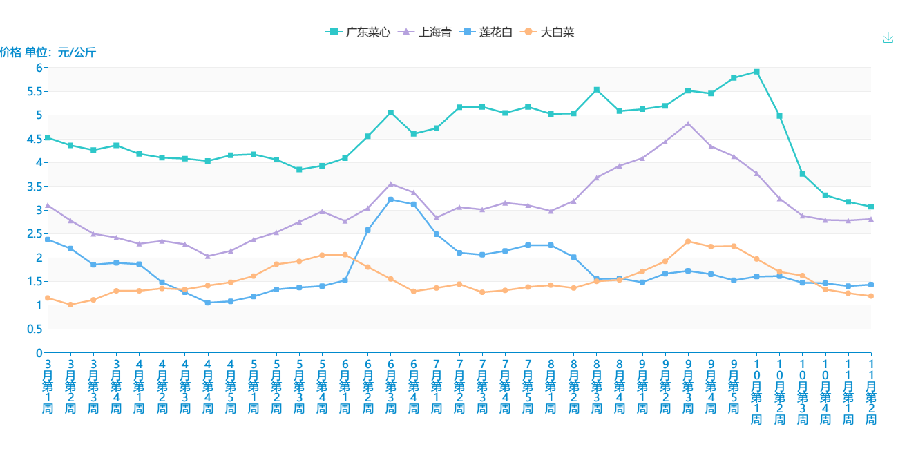 附件:11月份第2周蔬菜批发市场价格表及走势图