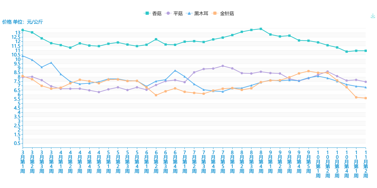 2018年3-11月 菌类平均价格走势图