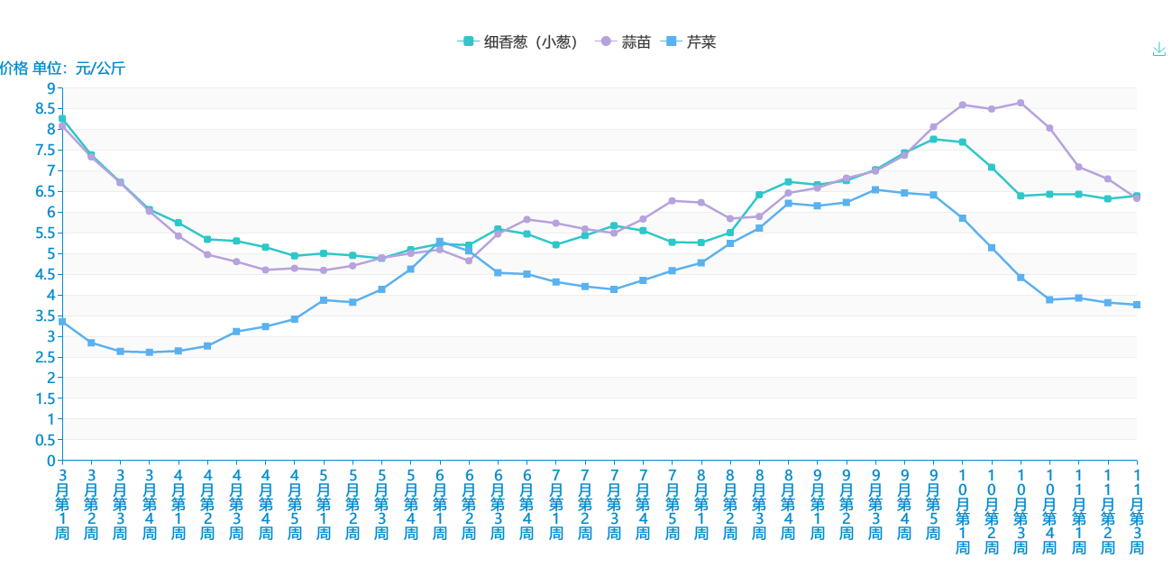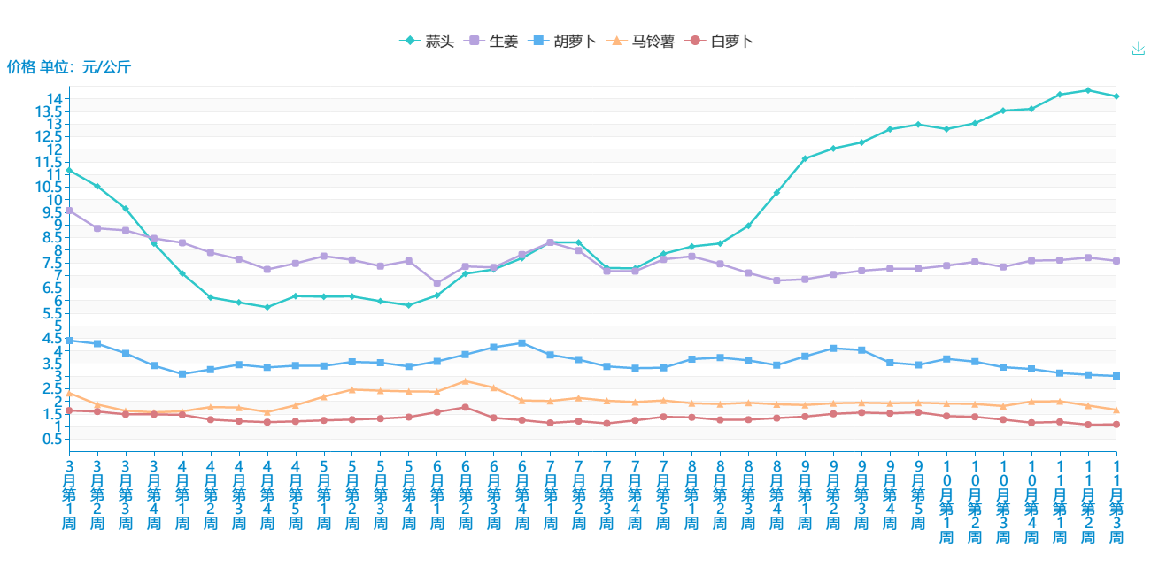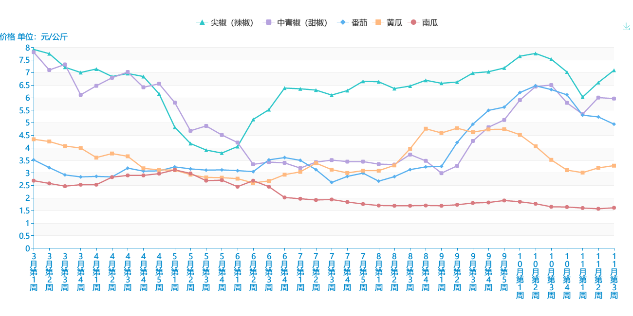 附件:11月份第3周蔬菜批发市场价格表及走势图