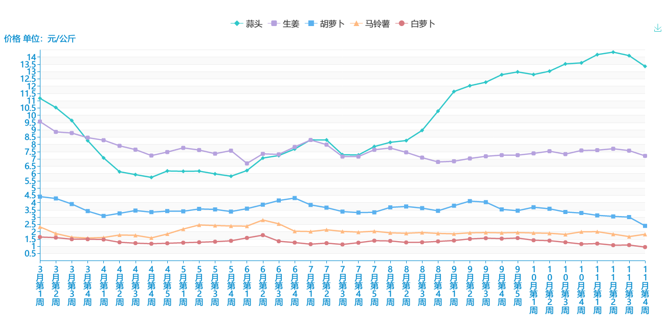 附件:11月份第4周蔬菜批发市场价格表及走势图