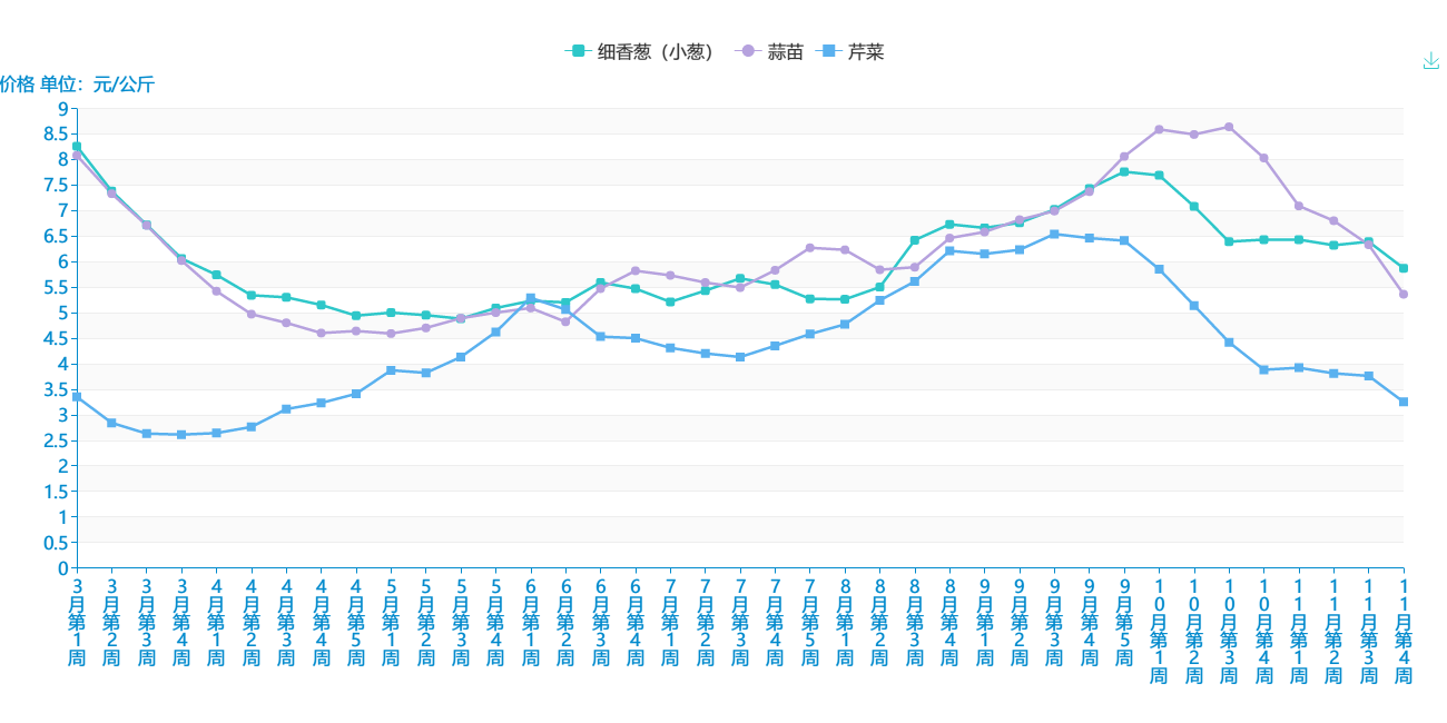 2018年3-11月 香细类蔬菜平均价格走势图