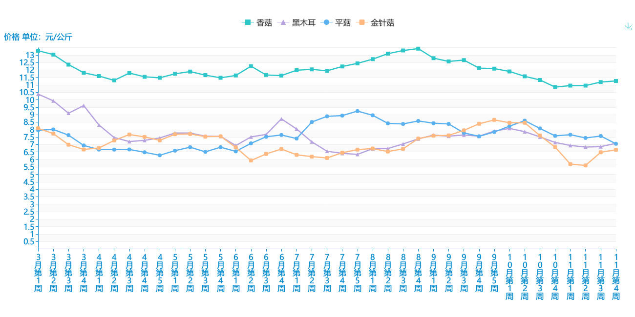 2018年3-11月 菌类平均价格走势图