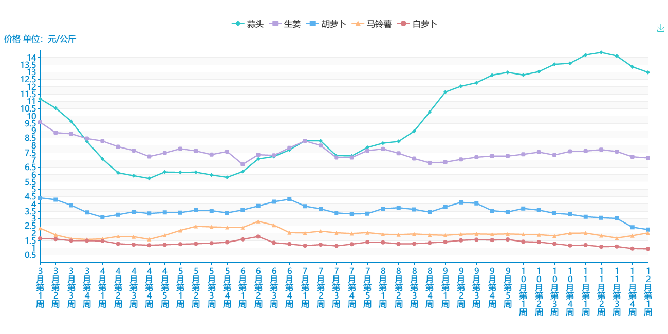 2018年3-12月 根茎类蔬菜平均价格走势图